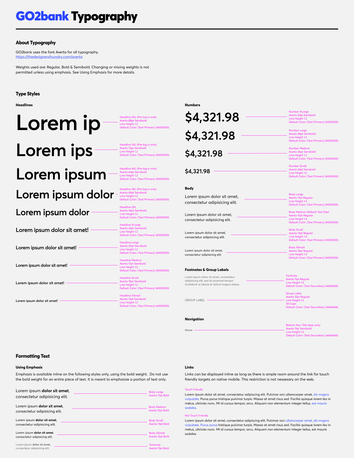 At Green Dot, we had several incomplete design systems started for different projects. When the GO2bank project was started, it was clear that a new design system was needed to serve as the basis for this project across iOS, Android and the web. It was an oportunity to create a best in class design system using the latest, tools, techniques and accessibilty. This design system would be the basis for all UX design moving forward, enabling us to quickly and efficiently create the thousands of screens nessesary to launch and maintain GO2bank and many other brand apps.