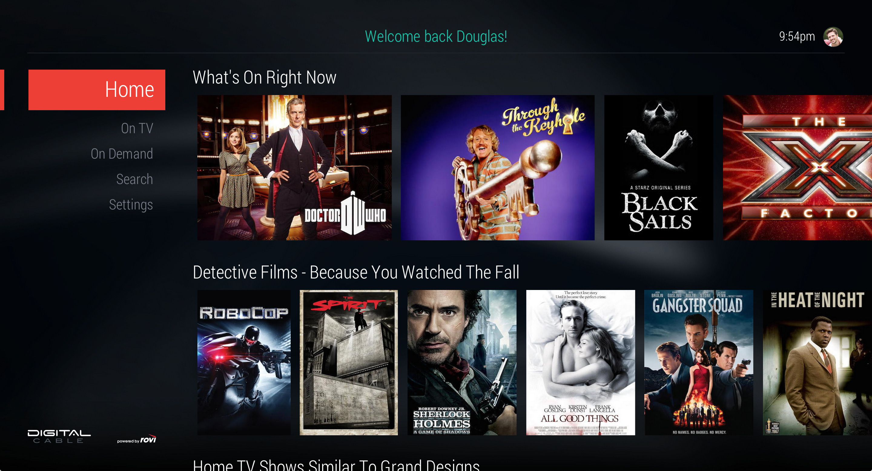 Rovi's business in 2014 was primarily based on providing TV guide data and IP to companies. Around this, Rovi had several TV guide products that were under active development - some web based, some set top box based. An effort was launched to combine these products into a unified experience that would scale from an embedded web page widget up to a next generation 4k set top box. The first application of the unified TV guide design would be an overhaul of an existing low power browser based TV guide made by Rovi and used on Grundig televisions. This was a European product so it would have to accommodate multiple languages and provide access to multiple country specific streaming services out of the box.